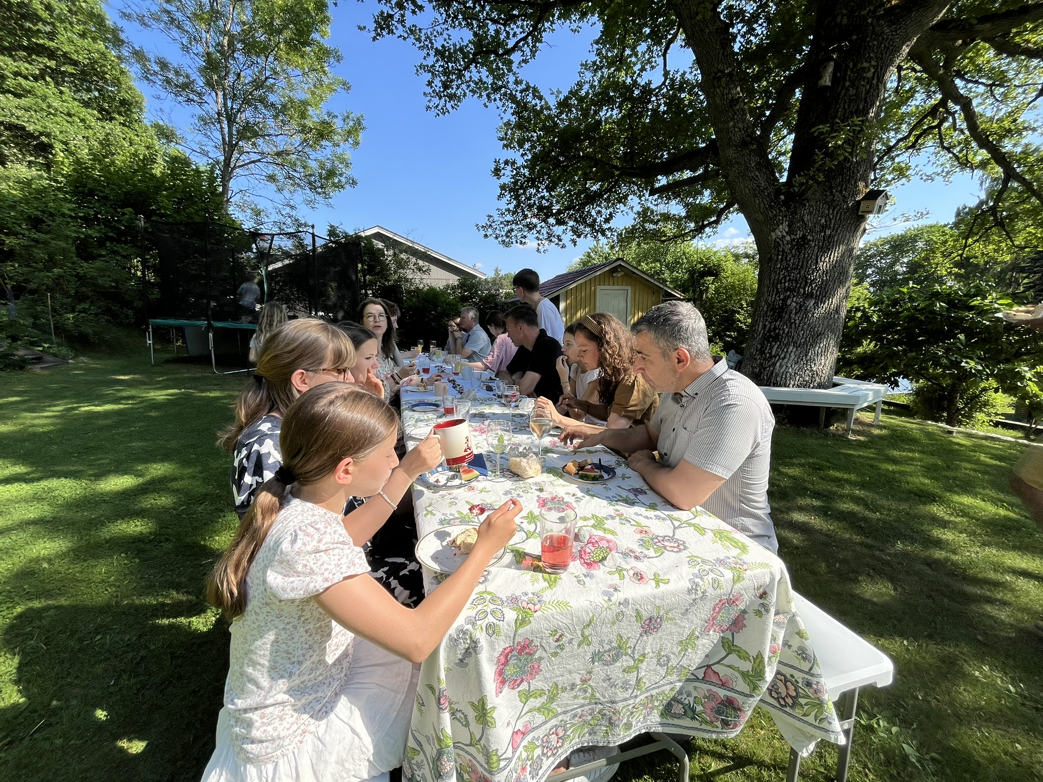 We were so luck with the weather, a super sunny day which turned out to be one of the hottest days of the year. So many good friends, family and neighbors came to celebrate Carolines 50th birthday. It was also a 10-year celebration for us moving to this house in Rönninge. We provided drinks and made some food, and everyone brought along a dish too, so there was a huge buffet set on the kitchen table. We had seats on the balcony and a long table in the garden.
